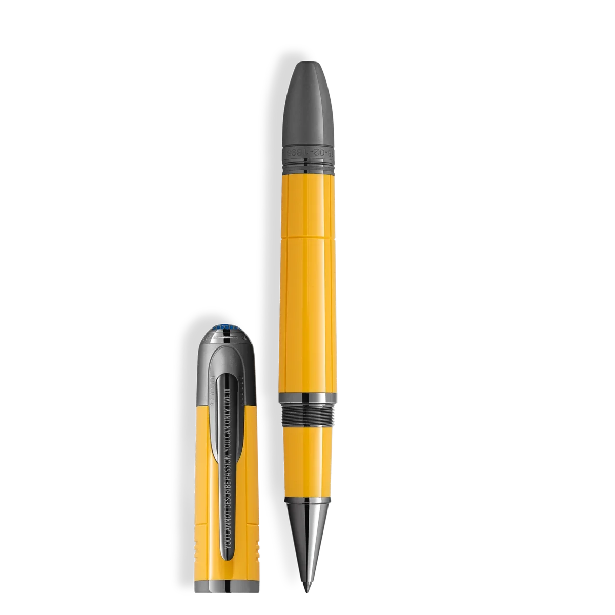 Το όνομα Ferrari είναι συνώνυμο του αισθητικού σχεδιασμού, των ισχυρών κινητήρων, της ατελείωτης τεχνικής καινοτομίας και ενός από τους πιο σημαντικούς άνδρες στην ιστορία της αυτοκινητοβιομηχανίας. Με το τεράστιο όραμα και την αχαλίνωτη πάθος του για τον μηχανοκίνητο αθλητισμό, ο Enzo Ferrari οδήγησε την εταιρεία του σε απαράμιλλο κύρος και δημιούργησε έναν μύθο που ζει ακόμα. Η Montblanc αφιέρωσε την ειδική έκδοση Montblanc Great Characters Enzo Ferrari στον άνθρωπο και το πάθος του για τους αγώνες. Αντλώντας έμπνευση τόσο από το έμβλημα της γενέτειρας του Enzo Ferrari, της Modena, όσο και από το εμβληματικό χρώμα του λογότυπου της Scuderia, αυτή η έκδοση τιμά τη δεύτερη ψυχή της Ferrari – το κίτρινο χρώμα. Οι ημερομηνίες γέννησης του Enzo Ferrari και της πρώτης του νίκης σε αγώνα είναι χαραγμένες στον κώνο, ενώ η υπογραφή του και το όνομα του εργαστηρίου του πατέρα του, «Officina Meccanica Alfredo Ferrari», σε αναφορά στον τόπο γέννησης του Enzo Ferrari, είναι χαραγμένα στην κορυφή του καπακιού. Στεφανώνεται από το έμβλημα Montblanc από πολύτιμη ρητίνη σε μπλε χρώμα – ως περαιτέρω φόρος τιμής στο έμβλημα της Μόντενα – και περιβάλλεται από περίτεχνη μεταλλική κατασκευή που θυμίζει τη μάσκα ενός vintage αυτοκινήτου. Η πρώτη νίκη του Enzo Ferrari, στο Circuito del Savio, ήταν επίσης η περίσταση που σηματοδότησε την αρχή του πλέον διάσημου λογότυπου της Ferrari. Μεταξύ των πολλών θεατών που θαύμασαν την τολμηρή οδήγηση του Enzo Ferrari εκείνη την ημέρα ήταν και η οικογένεια του άσου πιλότου Francesco Baracca, ο οποίος είχε υπηρετήσει κατά τον Α’ Παγκόσμιο Πόλεμο στην ίδια μονάδα με τον αδελφό του Enzo, Dino. Η μητέρα του Francesco Baracca, η κόμισσα Paolina Biancoli, πρότεινε στον Enzo Ferrari να χρησιμοποιήσει το έμβλημα ενός άγριου, αδάμαστου αλόγου από το αεροπλάνο του γιου της στα αγωνιστικά του αυτοκίνητα για καλή τύχη. Η σύνδεση του αλόγου με το θάρρος και τη θέληση για κυριαρχία ενός εθνικού ήρωα το έκανε ιδανικό σύμβολο για τον Enzo. Εννέα χρόνια αργότερα, το Cavallino Rampante χρησιμοποιήθηκε για πρώτη φορά σε κίτρινο φόντο για να κοσμήσει ένα αυτοκίνητο. Ήταν το 1932 στο 24ωρο αγώνα του Spa και η ομάδα Scuderia Ferrari κατέκτησε την 1η και τη 2η θέση με δύο αυτοκίνητα που έφεραν το Prancing Horse. Το Cavallino Rampante είναι χαραγμένο στο καπάκι του Montblanc Great Characters Enzo Ferrari Special Edition μαζί με τα λόγια της κόμισσας: «Le porterà fortuna» («Θα σου φέρει τύχη»). Το πρώτο αυτοκίνητο που κατασκευάστηκε από τη Ferrari, το 125 S, με δώδεκα κυλίνδρους, έφυγε από το εργοστάσιο στο Μαρανέλο στις 12 Μαρτίου 1947. Δώδεκα χαραγμένες γραμμές συμβολίζουν τους δώδεκα κυλίνδρους. Το σύνθημα του Enzo Ferrari, «Δεν μπορείς να περιγράψεις το πάθος, μπορείς μόνο να το ζήσεις», κοσμεί το κλιπ με επίστρωση ρουθηνίου.