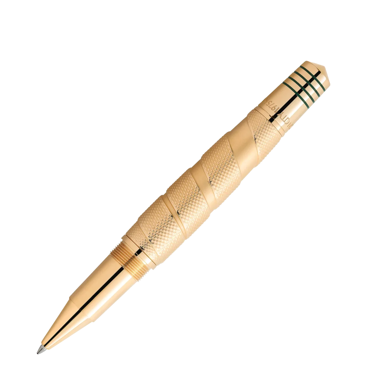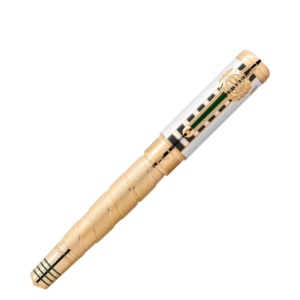 Λίγοι αθλητές έχουν τιμηθεί και αποθεωθεί όπως ο τρις παγκόσμιος πρωταθλητής βαρέων βαρών Μοχάμεντ Άλι, του οποίου οι θρυλικές στιγμές στον αθλητισμό και στον ακτιβισμό για τα πολιτικά δικαιώματα τον έκαναν έναν από τους πιο σημαντικούς αθλητές και ανθρωπιστές του 20ού αιώνα. Ως αθλητής, ο Άλι συγκλόνισε τον κόσμο με τη δύναμη, την ικανότητα και την προσωπικότητά του, κατακτώντας τον τίτλο του παγκόσμιου πρωταθλητή βαρέων βαρών σε ηλικία μόλις 22 ετών. Ωστόσο, η μεγαλύτερη επιτυχία του προήλθε από τις ανθρωπιστικές του προσπάθειες. Εμπνευσμένο από τη ρόμπα που φορούσε ο Άλι όταν μπήκε στον θρυλικό αγώνα στο Κινσάσα του Ζαΐρ το 1974, το πολύτιμο λάκα στο καπάκι αναπαριστά αυτό το χαρακτηριστικό μοτίβο, ενώ το μοτίβο στο χρυσό βαρέλι μοιάζει με τις ταινίες που χρησιμοποιούν οι αθλητές για να τυλίγουν τα χέρια τους. Η επιχρυσωμένη πεταλούδα στο καπέλο είναι εμπνευσμένη από τον χαρακτηριστικό τρόπο πάλης του: «Πέτα σαν πεταλούδα, τσίμπησε σαν μέλισσα». Ο μυτερός κώνος αναπαράγει αυτή την ιδέα και οι τέσσερις λακαρισμένες γραμμές μοιάζουν με τα σχοινιά ενός ρινγκ πυγμαχίας. Οι επιγραφές στον κώνο αναφέρονται στη νίκη του Άλι στον αγώνα του 1974 με το παρατσούκλι «Rumble in the Jungle», όταν ο Άλι κέρδισε το δεύτερο παγκόσμιο πρωτάθλημα βαρέων βαρών. Οι λεπτομέρειες της νίκης του, δηλαδή η νίκη στον όγδοο γύρο με τεχνικό νοκ-άουτ, αναγράφονται στο δαχτυλίδι του καπακιού. Ο κώνος φέρει επίσης αναφορά σε έναν διάσημο αγώνα του Ali το 1975, με το παρατσούκλι «Thrilla in Manila». Για να γιορτάσει τον δεύτερο τίτλο του, το έμβλημα Montblanc από λευκή πολύτιμη ρητίνη είναι διακοσμημένο με ένα «2». Για να υπογραμμίσει αυτή την επιτυχία, το κλιπ έχει το σχήμα ζώνης πρωταθλήματος πυγμαχίας και φέρει το όνομά του.