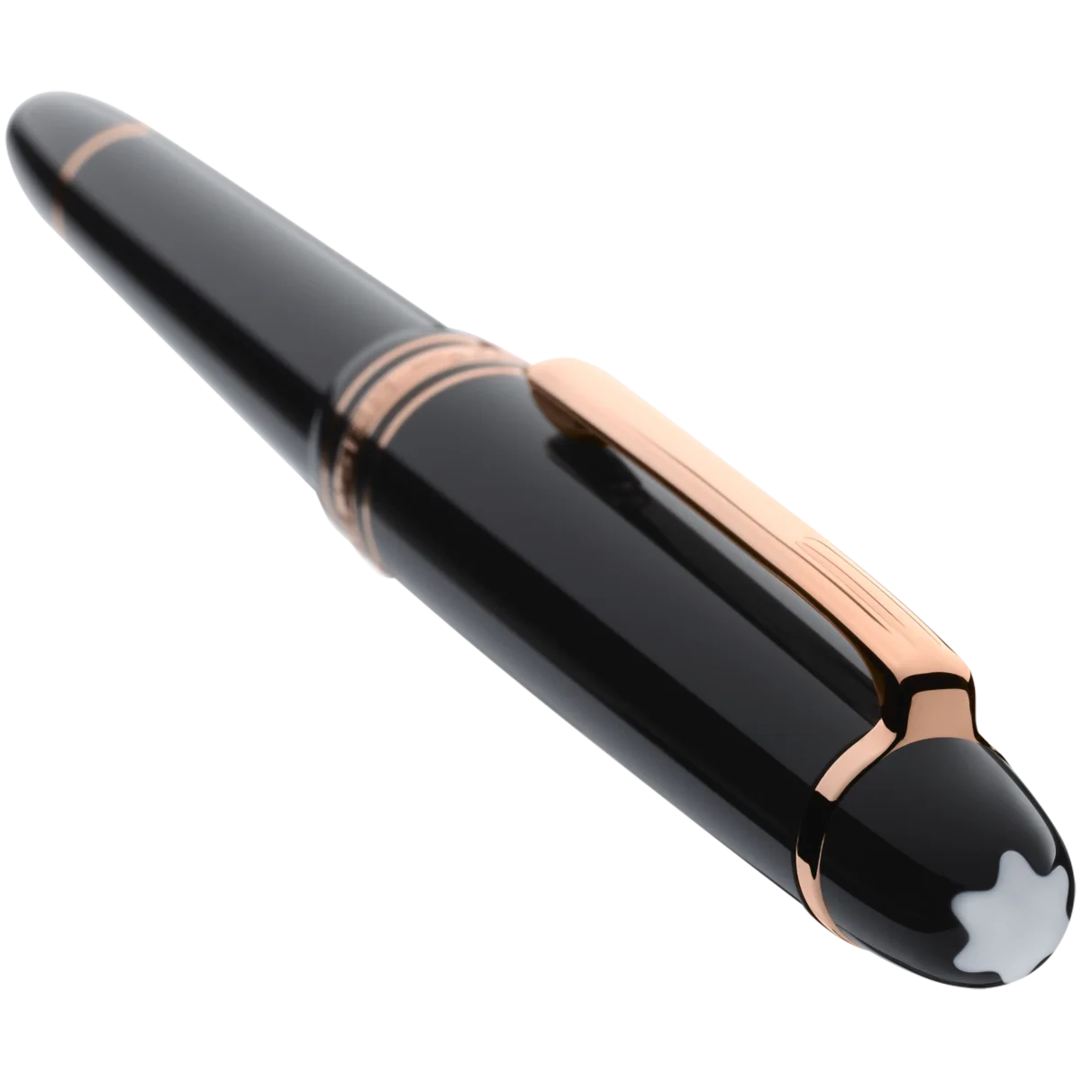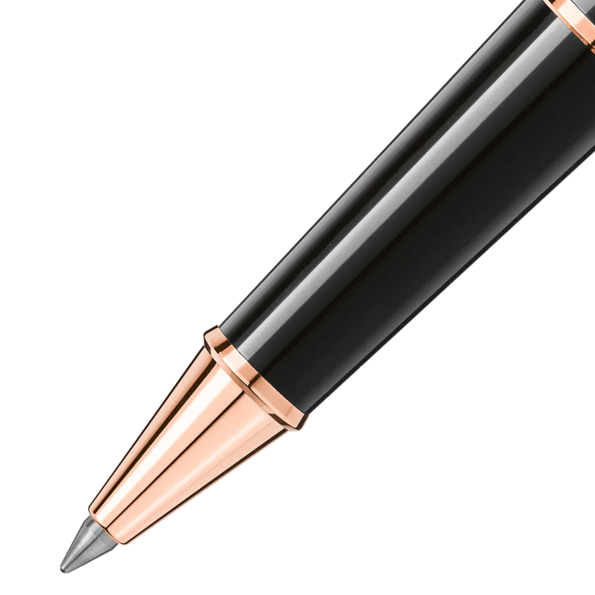 Η συλλογή Montblanc Meisterstück Classique με επίστρωση ροζ χρυσού είναι ένα σχέδιο που γράφει ιστορία. Παρουσιάστηκε το 1924, με μια λέξη που σημαίνει «αριστούργημα», το Meisterstück έχει γίνει το σύμβολο της υψηλής ποιότητας πολυτελούς γραφής. Το καπάκι και το σώμα είναι κατασκευασμένα από μαύρη πολύτιμη ρητίνη με το εμβληματικό λευκό έμβλημα Montblanc ενσωματωμένο στο καπάκι.