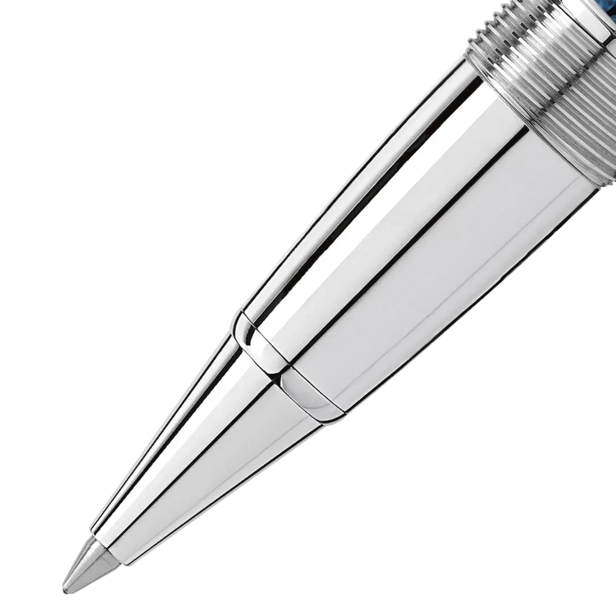 Το Meisterstück Solitaire Blue Hour LeGrand παρουσιάζεται ως ένα πολύτιμο, μπλε λακαρισμένο προϊόν Solitaire με πλατινένια εξαρτήματα. Η μαγική ώρα μεταξύ της ημέρας και της νύχτας – η Blue Hour – δημιουργεί μια απαλή αντίθεση και μια εκπληκτική ατμόσφαιρα, που αποτέλεσε πηγή έμπνευσης για το σχεδιασμό. Το εξάγωνο μοτίβο στο σώμα και το καπάκι αντανακλά τη διάθλαση των φώτων και της νυχτερινής κίνησης στις αστικές πόλεις.