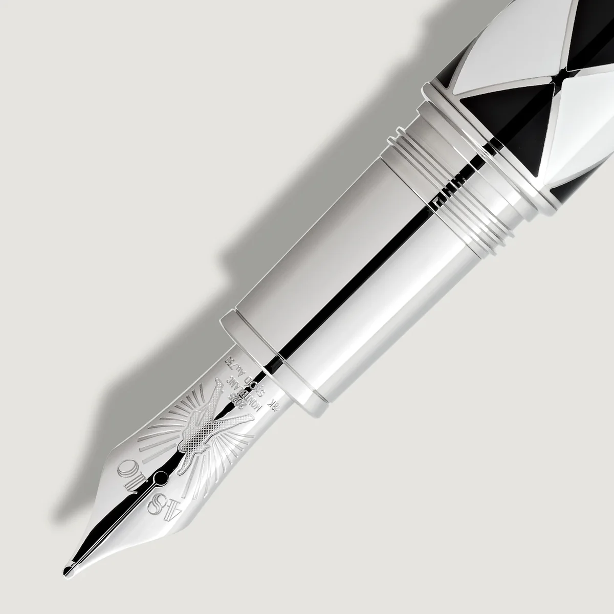Στην πλούσια ιστορία της ροκ μουσικής, λίγα ονόματα έχουν λάμψει τόσο σταθερά όσο αυτό των Queen. Με μια καριέρα που ξεπερνά τις πέντε δεκαετίες, το συγκρότημα είναι ένα από τα πιο επιτυχημένα όλων των εποχών. Κατά τη διάρκεια αυτής της περιόδου, οι Queen έφτασαν να ενσαρκώνουν τη δύναμη της μουσικής δημιουργικότητας και τα περισσότερα από τα τραγούδια τους παρέμειναν στην κορυφή των charts για εβδομάδες. Δημιούργησαν κάτι σαν το δικό τους μουσικό σύμπαν, αποτελούμενο από ένα συνδυασμό hard rock, glam rock, pop, funk και όπερας, καταρρίπτοντας τα όρια μεταξύ των ειδών. Η Montblanc αφιερώνει τη σειρά Great Characters Homage to Queen Limited Edition 1975 σε αυτά τα είδωλα της ροκ μουσικής, εμπνευσμένη από το άλμπουμ A Night At The Opera. Μαύρο και άσπρο. Κανένας άλλος συνδυασμός χρωμάτων δεν περιγράφει τόσο έντονη αντίθεση και κανένας άλλος δεν θα μπορούσε να συμβολίσει καλύτερα την έκταση του μουσικού σύμπαντος των Queen. Για κάποιο διάστημα, το The Black and the White είχε ακόμη προταθεί ως τίτλος του δεύτερου στούντιο άλμπουμ τους και ήταν το σύνθημα για το θεαματικό πάρτι γενεθλίων του Mercury έντεκα χρόνια αργότερα. Η Limited Edition 1975 εμφανίζεται επίσης με αυτή την αντιθετική εμφάνιση. Το τέταρτο στούντιο άλμπουμ της μπάντας, ωστόσο, ξεπέρασε όλα τα προηγούμενα και θεωρείται το πιο περίτεχνα παραγόμενο άλμπουμ του 20ού αιώνα. Οι τέσσερις καλλιτέχνες που συμμετείχαν σε αυτό έχουν μείνει στην ιστορία: ο Freddy Mercury, ο χαρισματικός frontman με φωνητικό εύρος που καλύπτει αρκετές οκτάβες και πλούσιο vibrato, ο Brian May, ο βιρτουόζος κιθαρίστας με τον αδιαμφισβήτητο ήχο της ηλεκτρικής κιθάρας του, ο John Deacon, ο εξαιρετικά δημιουργικός μπασίστας, και ο Roger Taylor, η ρυθμική καρδιά της μπάντας. Ως φόρος τιμής σε αυτούς τους τέσσερις εξαιρετικούς μουσικούς, τα στυλιζαρισμένα πορτρέτα τους αποθανατίζονται στο μαύρο καπάκι του γραφικού εργαλείου, με βάση το εικαστικό των εμβληματικών εξωφύλλων των Queen II και Hot Space. Το άλμπουμ A Night at the Opera – και ιδίως το κεντρικό κομμάτι Bohemian Rhapsody – εξηγεί το όνειρο του Freddie Mercury να δημιουργήσει έναν δίσκο επικών διαστάσεων. Η εξωφρενική ενορχήστρωση του single, διάρκειας έξι λεπτών, συνδυάζει μπαλάντες για πιάνο, όπερα και ροκ, διανθισμένες με πολυεπίπεδες όπερες, καταρρακτώδεις φωνές και ιδιόμορφες αναφορές σε χαρακτήρες όπως ο Γαλιλαίος ή ο Σκαραμούτσε, μια φιγούρα από την Commedia dell’Arte. Ο ίδιος ο Mercury, γνωστός για τα φανταχτερά του κοστούμια επί σκηνής, συχνά μεταμορφωνόταν σε έναν άλλο χαρακτήρα της Commedia dell’Arte, τον Harlequin. Το περίφημο στενό κοστούμι του με το ασπρόμαυρο μοτίβο σε σχήμα ρόμβου υπογράμμιζε την αντισυμβατική σκηνική του προσωπικότητα και ενέπνευσε το ρομβοειδές σχέδιο του κυλίνδρου. Η έκδοση τιμά επίσης τον Brian May και το εκπληκτικό παίξιμό του στην κιθάρα, που ήταν τόσο καθοριστικό για τον ήχο του άλμπουμ, δίνοντας στον πλατινένιο κώνο τη χαρακτηριστική του εμφάνιση. Αυτό θυμίζει τα κουμπιά ελέγχου έντασης και τόνου της διάσημης ηλεκτρικής κιθάρας του May. Ο δακτύλιος του κώνου είναι χαραγμένος με το όνομα του άλμπουμ: A Night at the Opera. Το έτος κυκλοφορίας του, το 1975, ενέπνευσε την απόφαση να περιοριστεί η έκδοση σε 1975 στυλό και 1975 rollerballs. Το στέμμα που φορούσε ο Mercury κατά τη διάρκεια της τελικής ερμηνείας του God Save The Queen ήταν η έμπνευση πίσω από το περίγραμμα της κορυφής του καπακιού της Limited Edition και είναι ταυτόχρονα μια μεταφορά για τον μεγαλοπρεπή χαρακτήρα της μπάντας και τη μουσική της κληρονομιά. Το κ