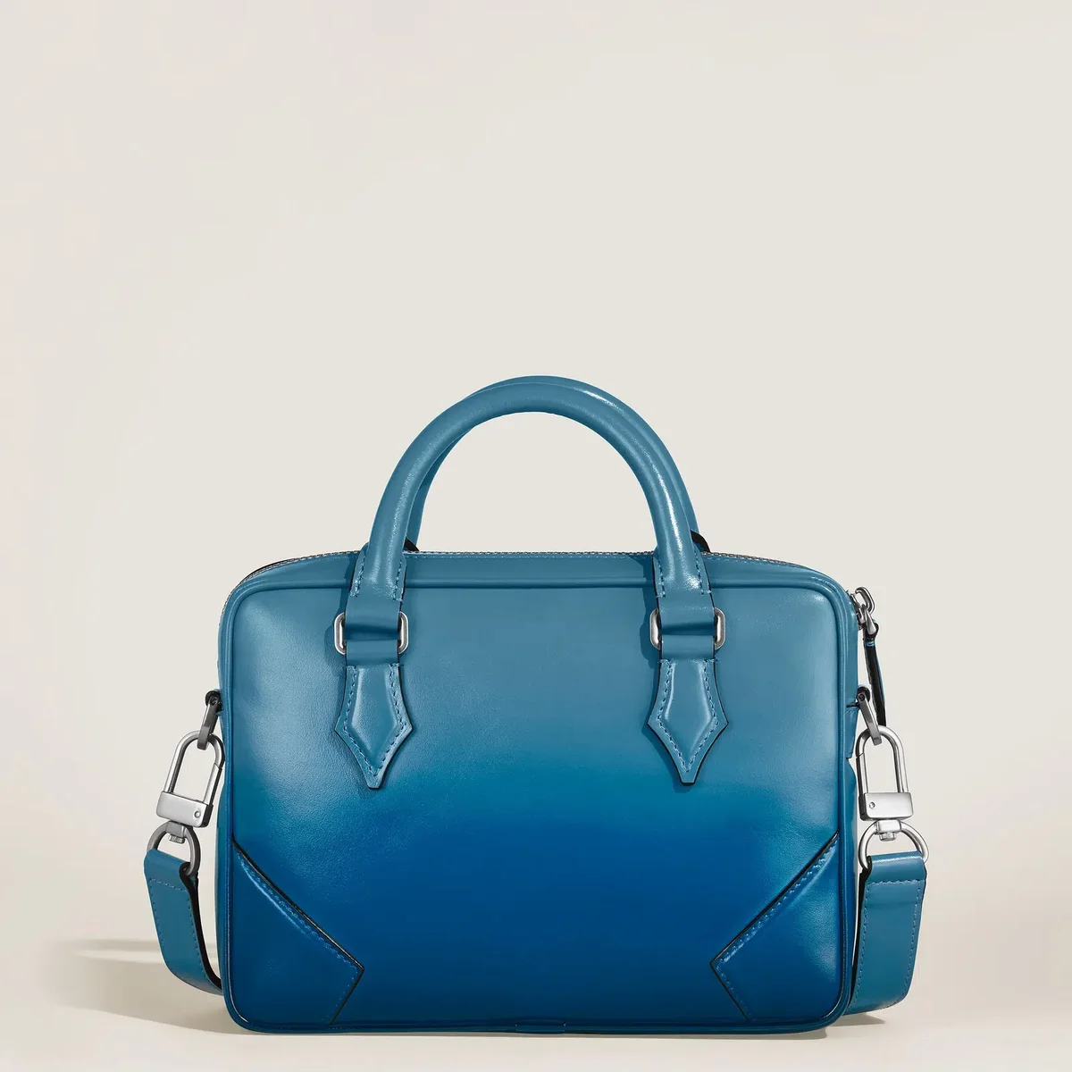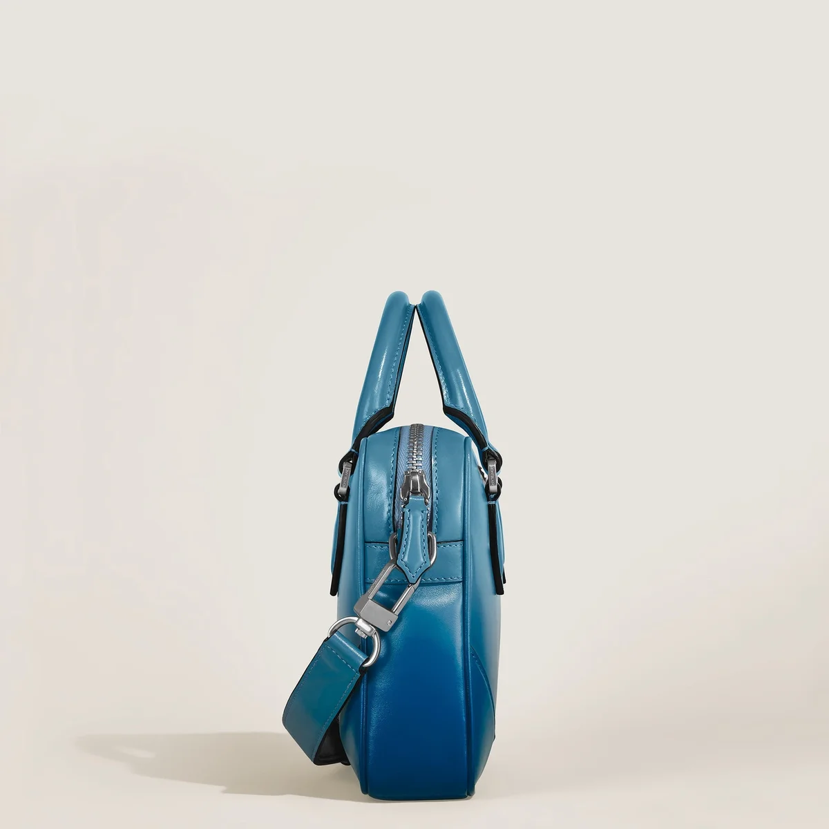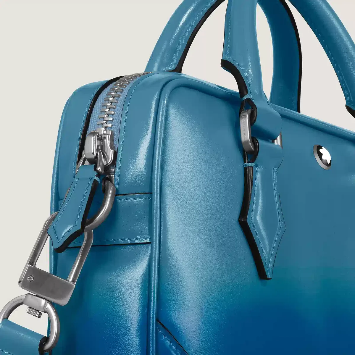 Η μίνι θήκη εγγράφων Meisterstück, χειροποίητη από μαλακό δέρμα σε όμορφο καπνιστό μπλε χρώμα, προσφέρει μια εξαιρετική εμπειρία μεταφοράς. Ενισχυμένη με ένα εφέ sfumato που εφαρμόζεται χειροκίνητα, διαθέτει ένα κύριο διαμέρισμα για τα καθημερινά απαραίτητα και μια τσέπη με φερμουάρ για την οργάνωση μικρότερων αντικειμένων. Αριθμός αναγνώρισης MB199274