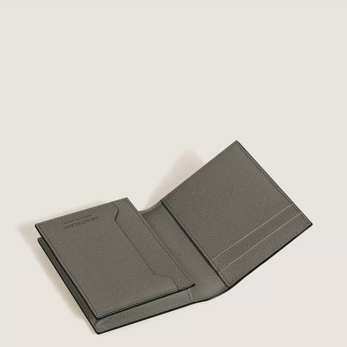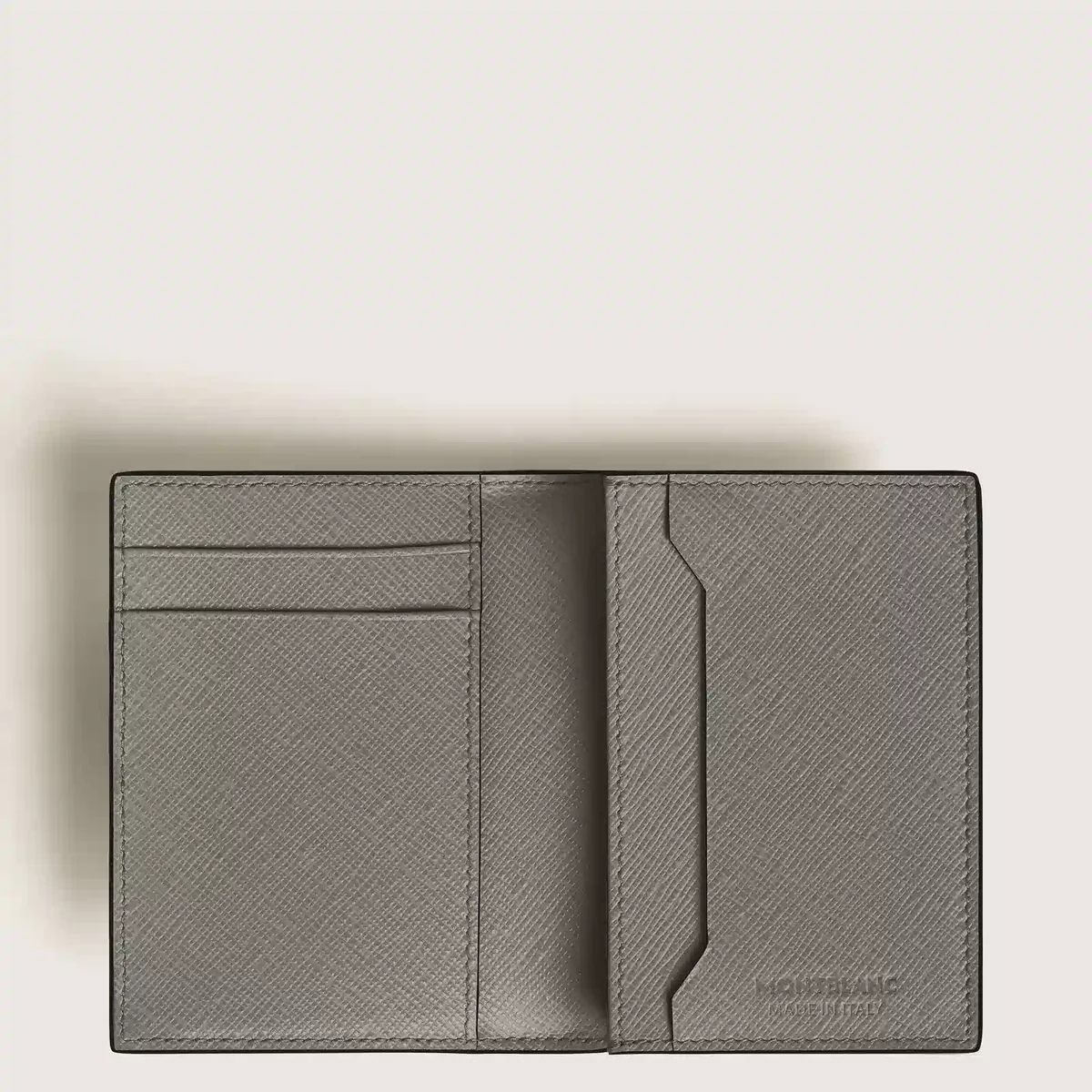 Αν και μικρού μεγέθους, αυτή η δερμάτινη θήκη καρτών αποδεικνύεται ένας πραγματικά ευέλικτος σύντροφος με λειτουργικές λεπτομέρειες τόσο στο εξωτερικό όσο και στο εσωτερικό. Στο εσωτερικό υπάρχουν τρεις θήκες για πιστωτικές κάρτες και ένα διαμέρισμα για επαγγελματικές κάρτες, καθώς και μια επιπλέον τσέπη. Κατασκευασμένη από δέρμα με τύπωμα Saffiano σε μεσαίο γκρι χρώμα, το εξωτερικό της διαθέτει μια επιπλέον θήκη για μια τέταρτη πιστωτική κάρτα.