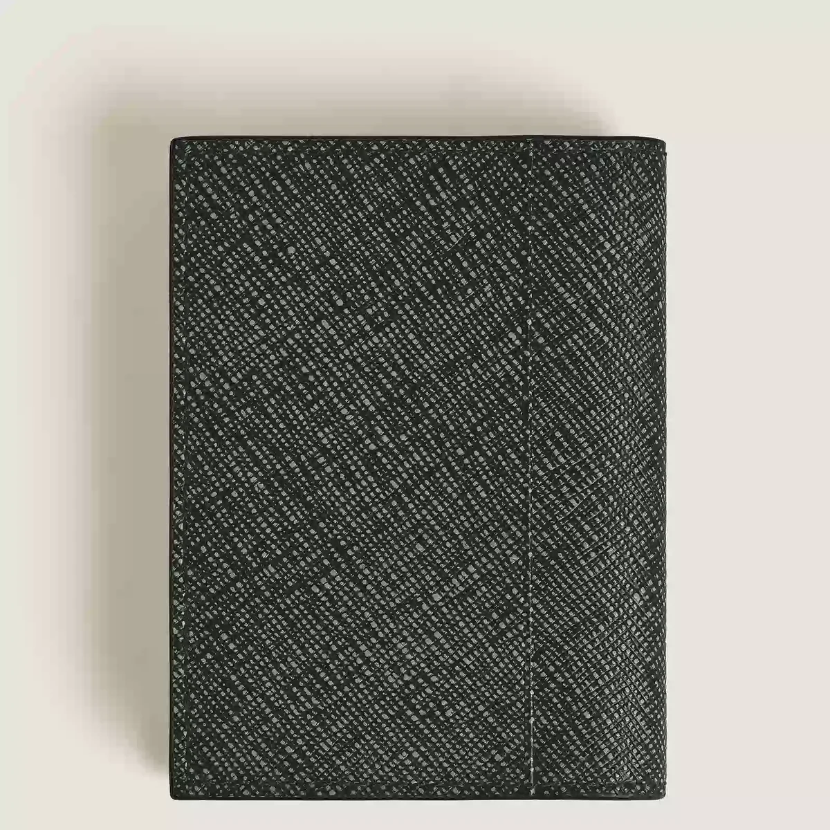 Συμπαγής αλλά ευέλικτη, αυτή η θήκη καρτών είναι κατασκευασμένη από δέρμα δύο χρωμάτων με ανάγλυφη υφή, σε έναν κομψό συνδυασμό χακί και μαύρου. Σχεδιασμένη με λειτουργικές λεπτομέρειες εσωτερικά και εξωτερικά, διαθέτει τρεις θήκες για πιστωτικές κάρτες, ένα διαμέρισμα για επαγγελματικές κάρτες και μια επιπλέον τσέπη στο εσωτερικό, ενώ το εξωτερικό περιλαμβάνει μια επιπλέον θήκη για μια τέταρτη πιστωτική κάρτα.