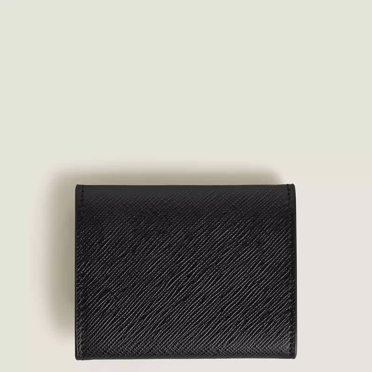 Κομψή και συμπαγής, αυτή η θήκη νομισμάτων είναι κατασκευασμένη από μαύρο ανάγλυφο δέρμα. Διαθέτει ένα ευρύχωρο διαμέρισμα για νομίσματα και έχει σχεδιαστεί για να χωράει διακριτικά στην τσέπη σας.
